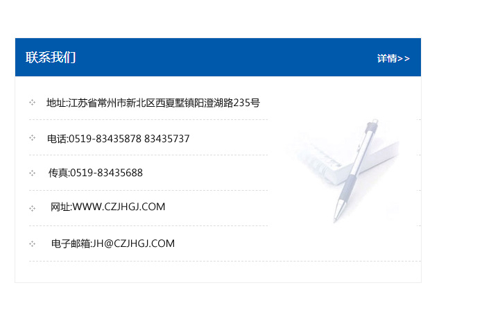 地址:常州市新北區友邦商務大廈1幢16、17層  電話:0519-85101652  傳真:0519-85112595  郵編:213022  網址:www_cz-jiayue_cn.52nana.com  郵箱:xiajifengaa@163.com
